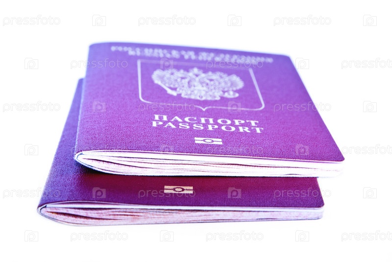 Два заграничных паспорта на белом фоне