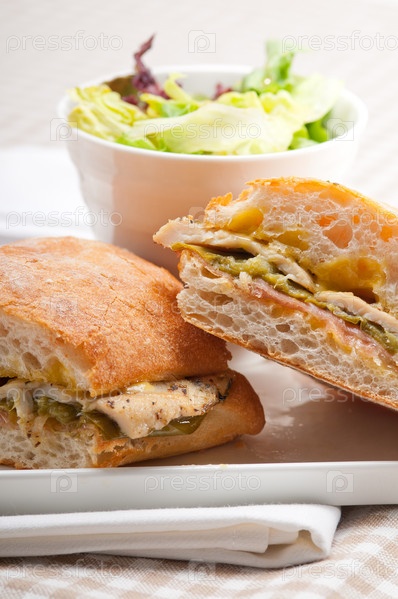 Куриный сэндвич панини с итальянским хлебом чиабатта