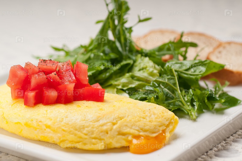 Сырный омлет с помидором и салатом