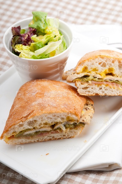 Куриный сэндвич панини с итальянским хлебом чиабатта