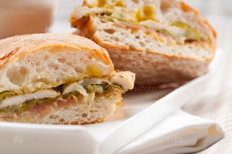 Куриный сэндвич панини с итальянским хлебом чиабатта