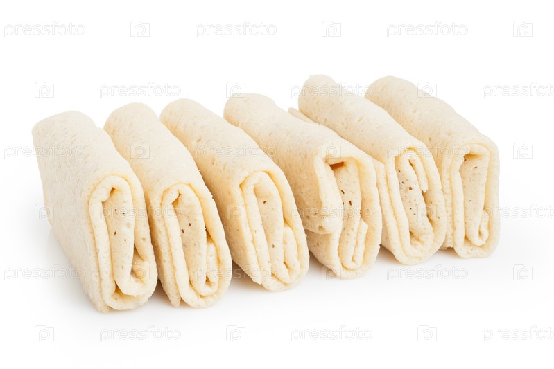 Замороженные блины с начинкой, изолированно на белом фоне