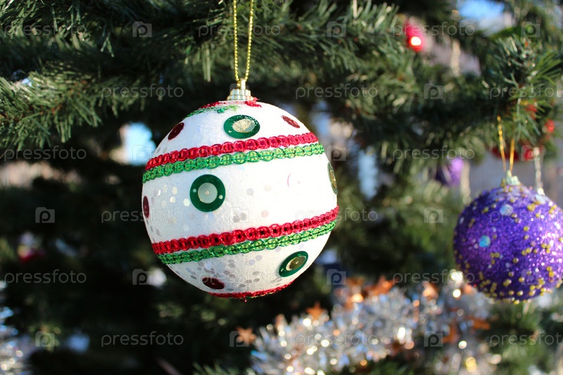 Белый шар на новогодней елке
