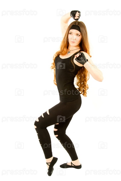 Женщина занимается фитнесом на белом фоне