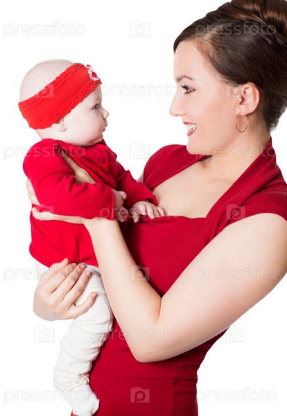 Мать с ребенком на белом фоне