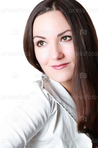 Портрет красивой женщины стемными волосами, изолированной на белом фоне