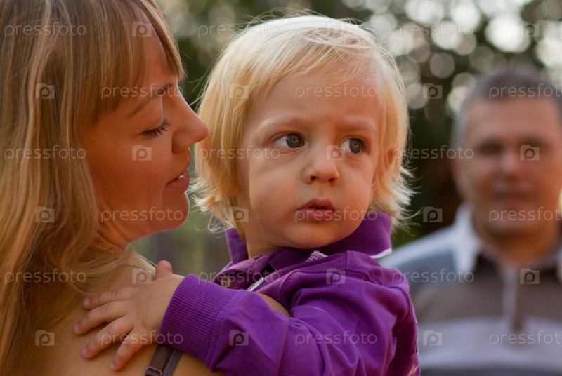 Маленький белокурый мальчик и его семья на открытом воздухе