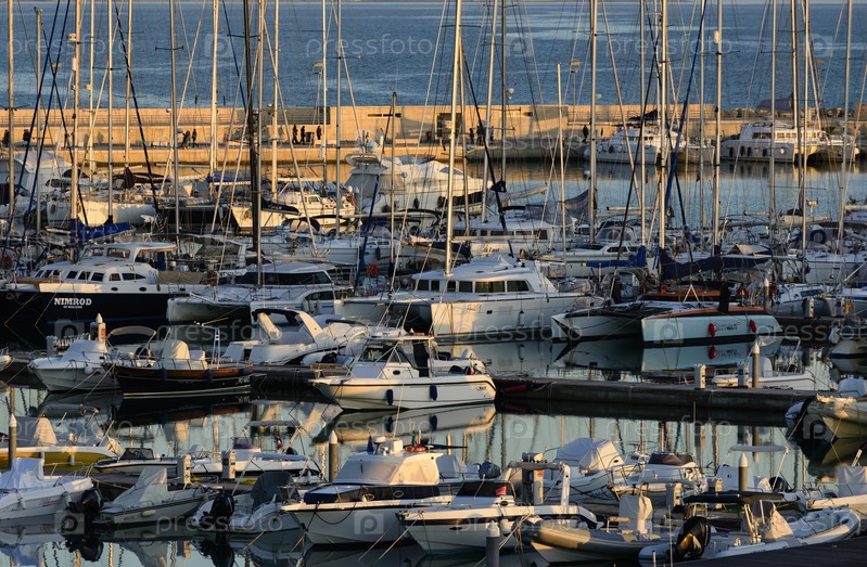 Италия, Сицилия, Средиземное море, Марина ди Рагуза, роскошные яхты в порту на закате