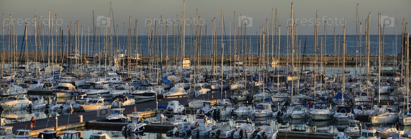 Италия, Сицилия, Средиземное море, Марина ди Рагуза, роскошные яхты в порту на закате