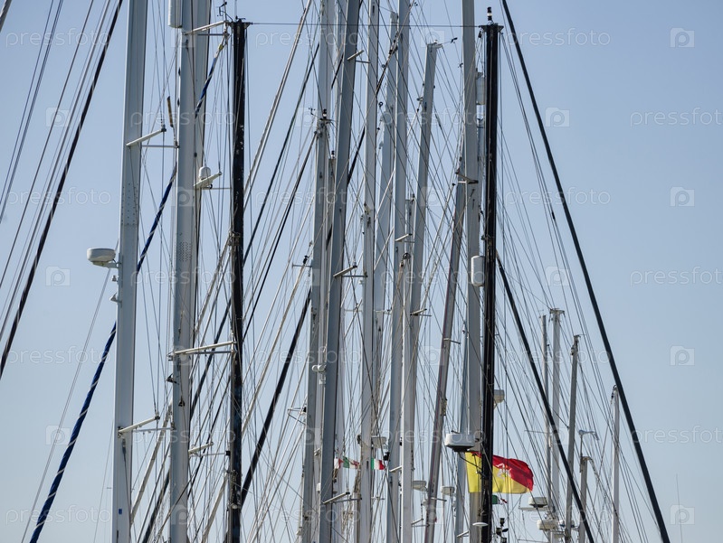 Италия, Сицилия, Средиземное море, Марина ди Рагуза, мачты парусных яхт в порту