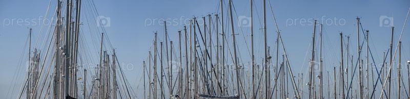 Италия, Сицилия, Средиземное море, Марина ди Рагуза, мачты парусных яхт в порту