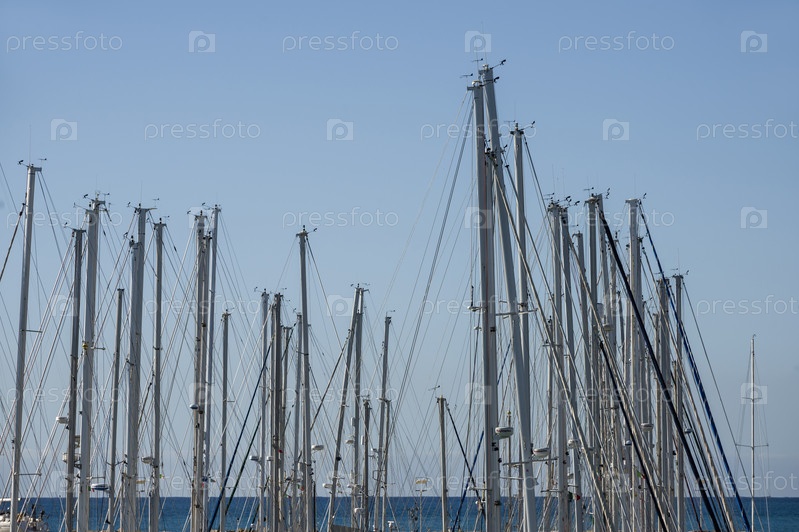 Италия, Сицилия, Средиземное море, Марина ди Рагуза, мачты парусных яхт в порту