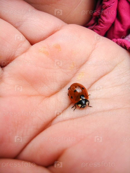Маленькая божья коровка на руке