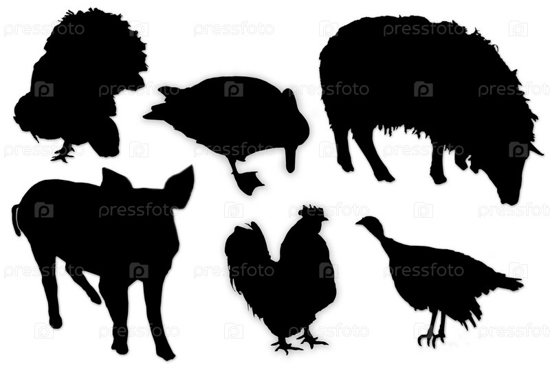 Черные силуэты домашних животных и птиц