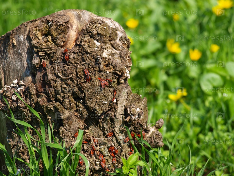 Старый пень на солнечном лугу