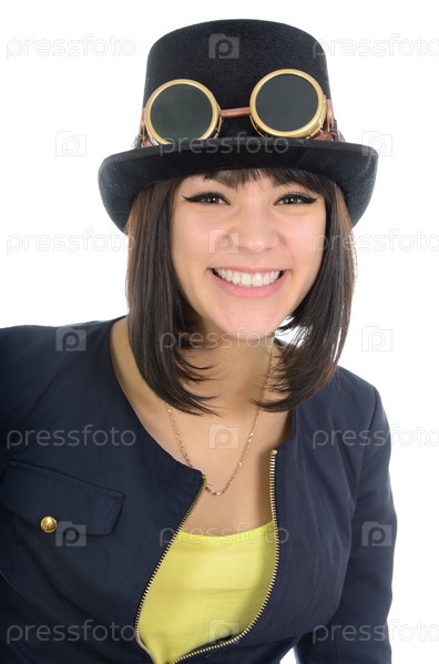 Портрет девушки в стиле стим-панк, изолировано на белом