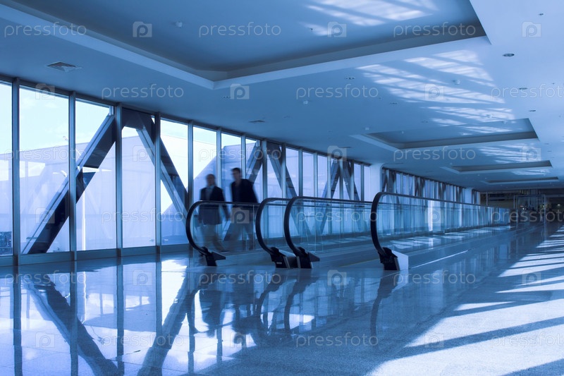 Перемещение людей возле эскалатора в офисном зале