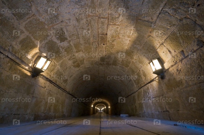 Россия,Санкт-Петербург.Каменный тоннель с освещением в Гатчинском дворце