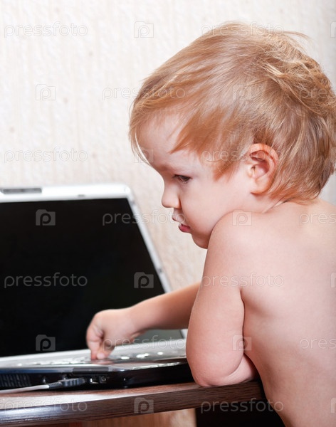 Маленький ребенок играет на ноутбуке