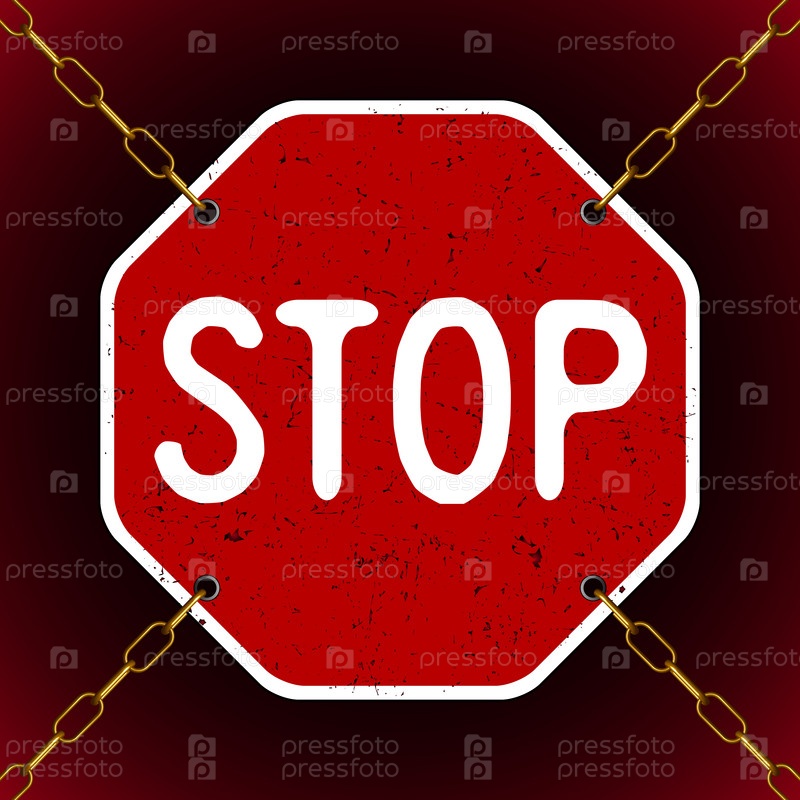 Ржавый знак остановки на цепях