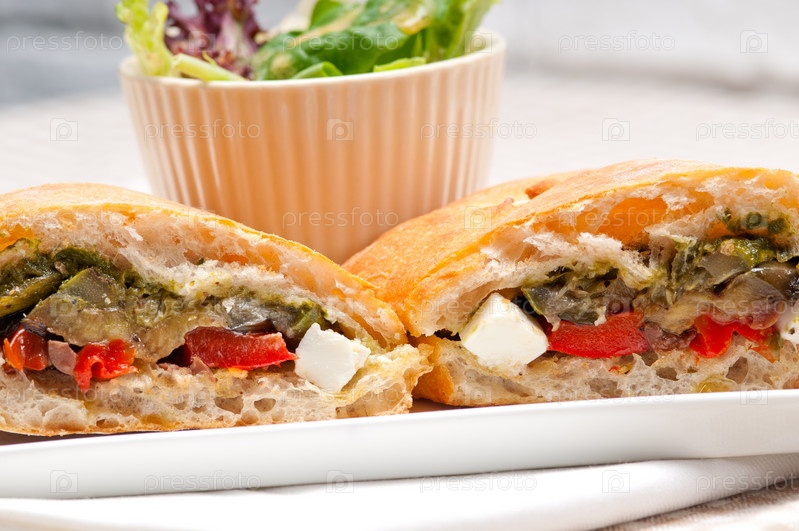Сэндвич панини с овощами, сыром фета и хлебом чиабатта