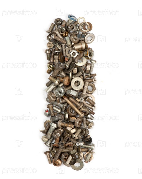 Алфавит из болтов - буква I на белом фоне