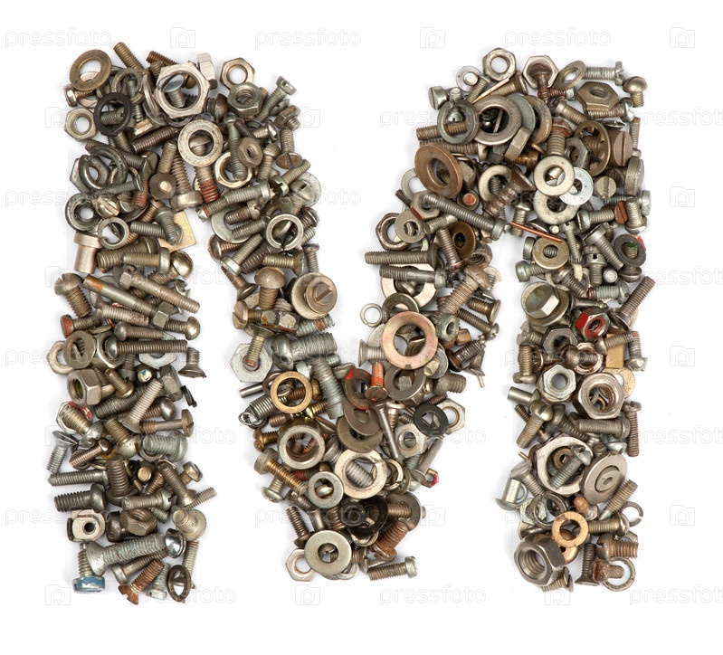 Алфавит из болтов - буква M на белом фоне