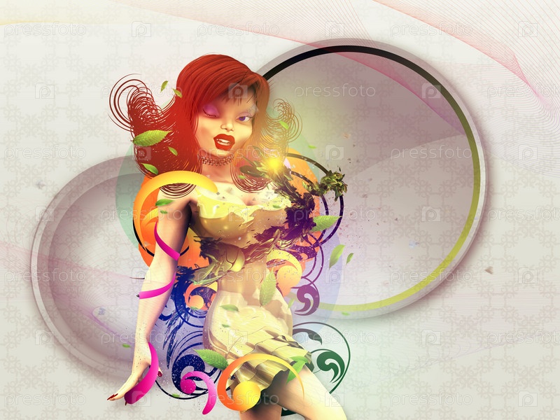 Модная 3d девушка с цветочным орнаментом