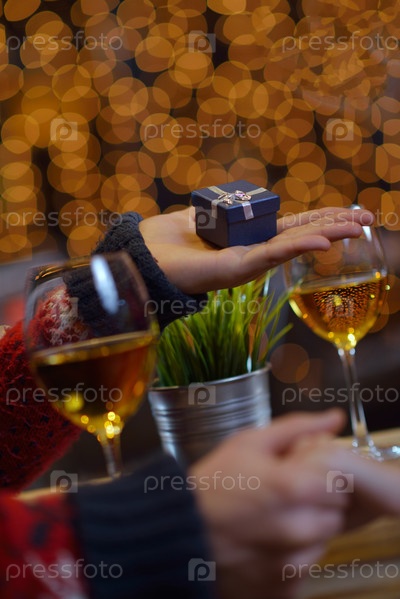 Молодой человек дарит подарок девушке