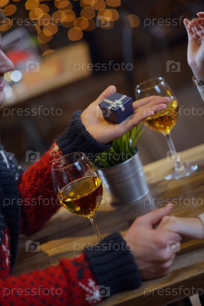 Молодой человек дарит подарок девушке
