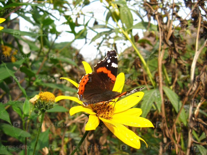 Бабочка Ванесса Аталанта на цветке
