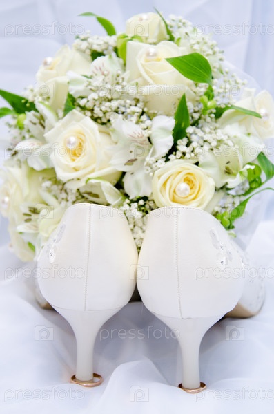 Обручальные кольца и туфли на высоком каблуке