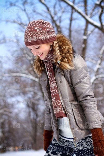 Блондинка в зимнем парке на открытом воздухе