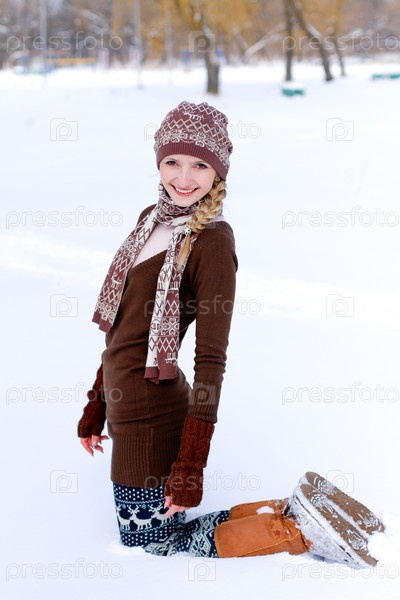 Молодая женщина в зимнем парке на открытом воздухе