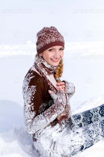 Счастливая девушка в снегу на открытом воздухе