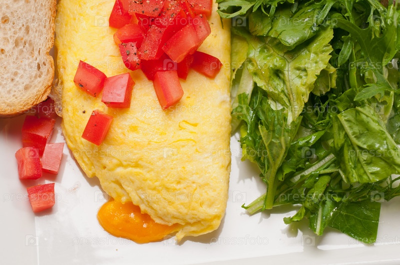 Сырный омлет с помидором и салатом