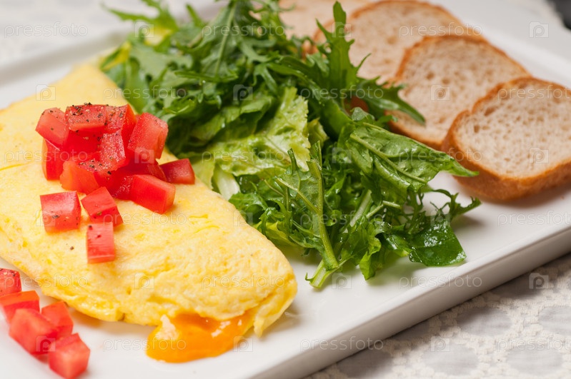 Сырный омлет с помидором и салатом