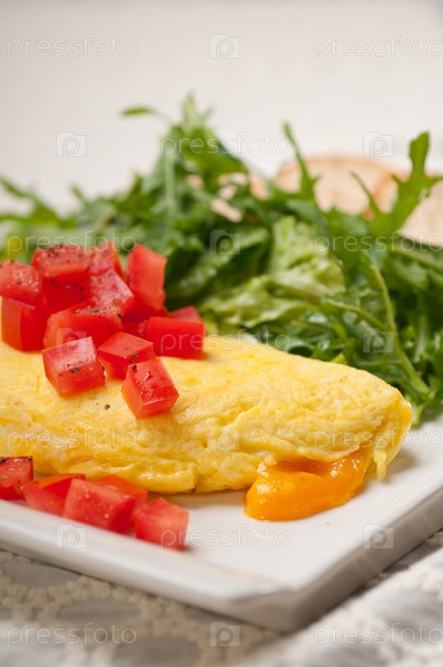 Сырный омлет с помидором и салатом