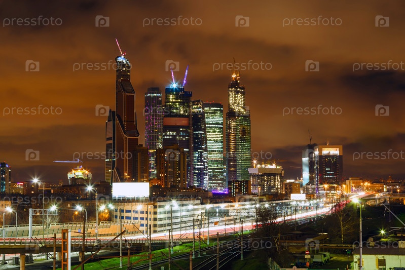 Ночная дорога и небоскребы