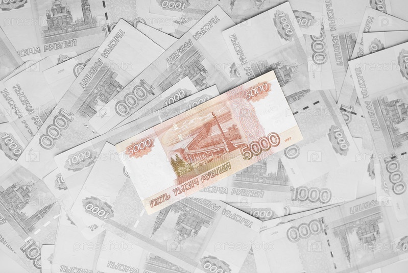 Куча купюр высокого достоинства в рублях