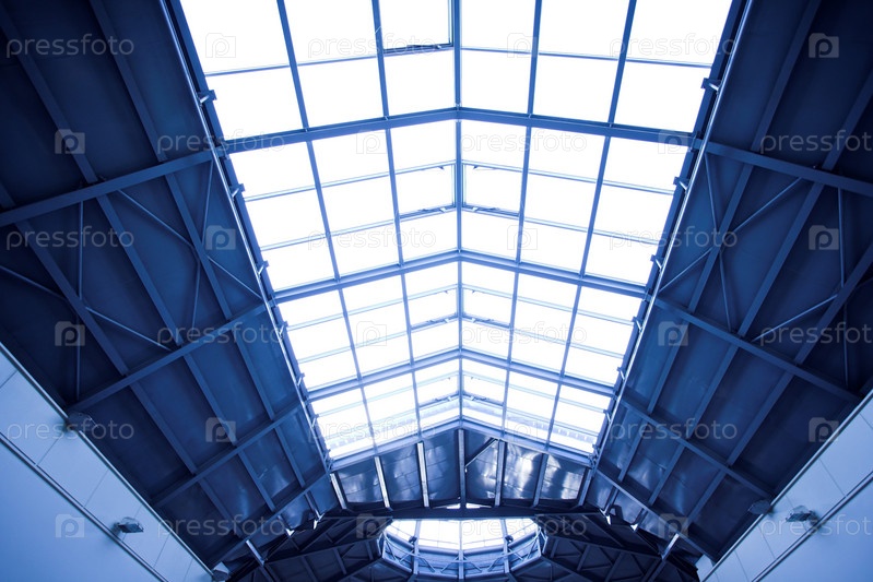 Голубой потолок внутри современного офиса