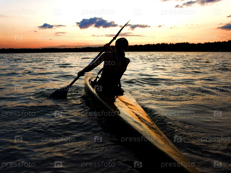Байдарочник на фоне заката