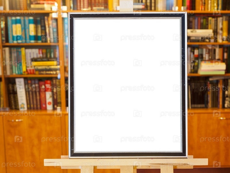 Белый холст на мольберте в библиотеке