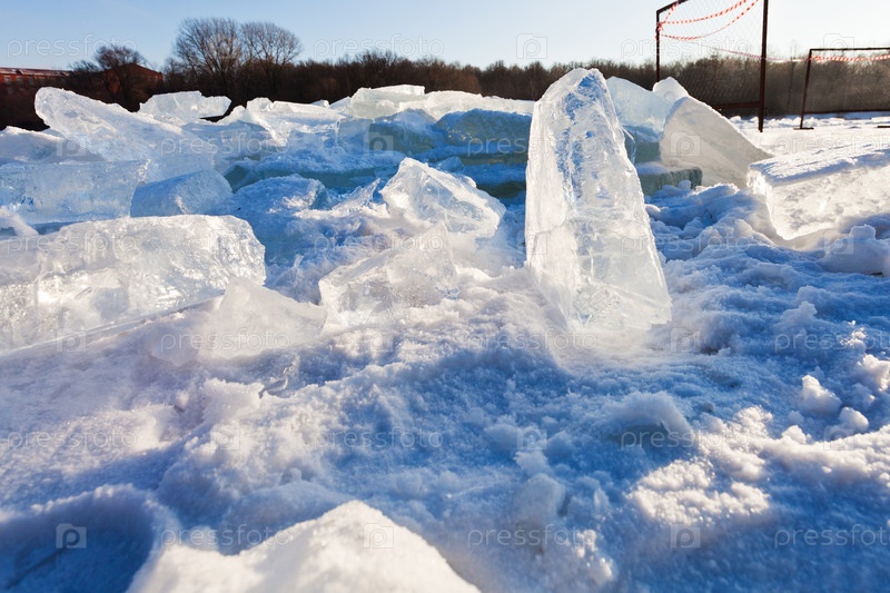 Блоки льда в реке в холодный зимний день