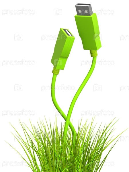 USB-кабели в виде зеленых стеблей, растущих из зелёной травы