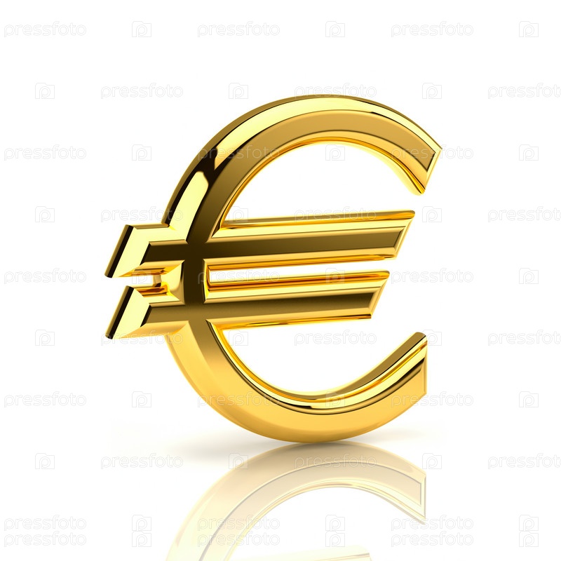 Знак евро, сделанный из золота, на белом фоне