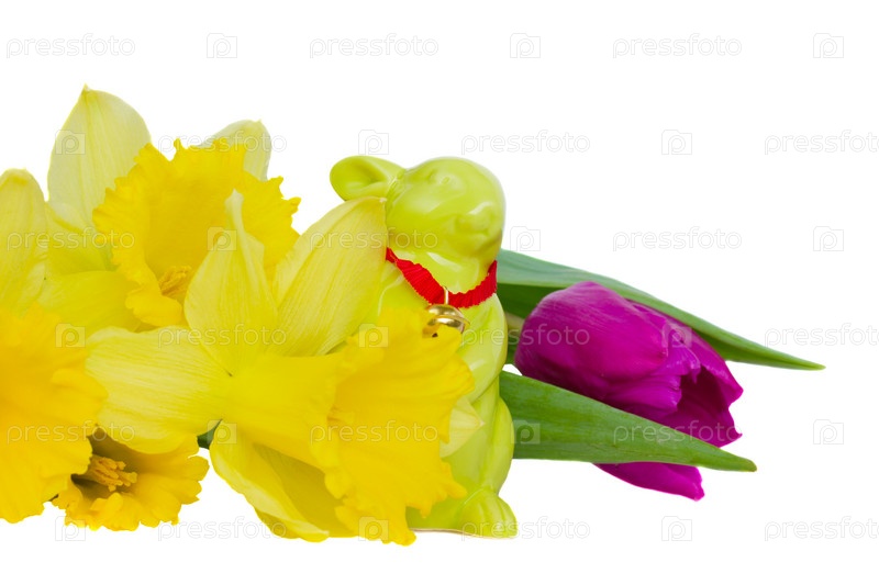Пасхальные цветы и кролик