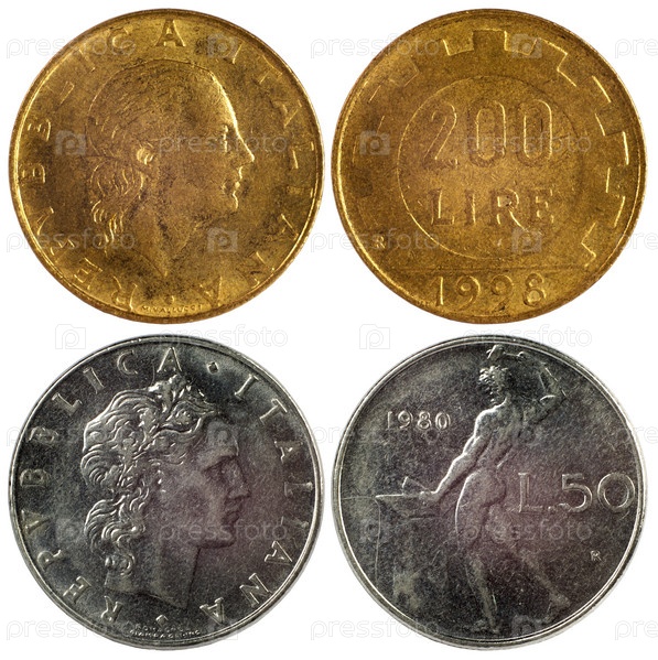Редкие монеты Италии, изолированные на белом фоне
