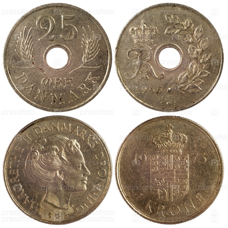 Старый редкие монеты Дании, изолированные на белом фоне