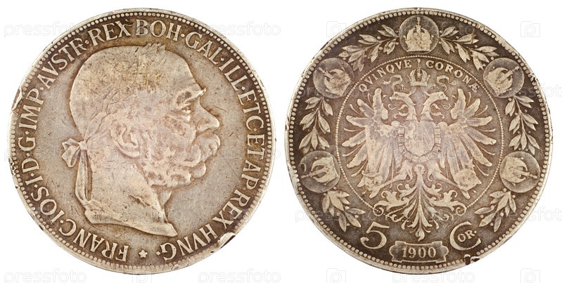 Винтажная серебряная монета Австрии 1900 года, изолированная на белом фоне
